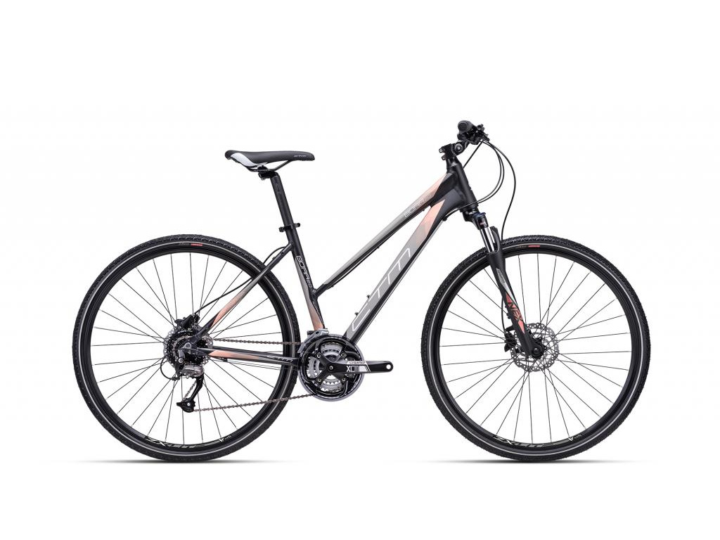 Dámsky crossový bicykel CTM Bora 2.0 na rekreačnú jazdu po cestách a spevnených a nespevnených chodníkoch. Môžete sa spoľahnúť na kvalitné komponenty Shimano s prevodmi 3x9, hydraulické kotúčové brzdy a uzamykateľnú odpruženú vidlicu.