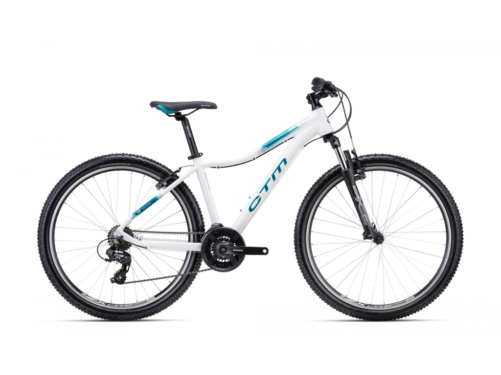 Dámsky horský bicykel CTM Charisma 1.0 v elegantnom dizajne, vhodný pre rekreačné cyklistky. Ľahký hliníkový rám na 27,5 palcových kolesách je osadený odpruženou vidlicou Suntour XCT28 pre vaše pohodlie, radením Shimano s 3x7 prevodmi a mechanickými brzdami. Či už sa vydáte na cyklotrasy alebo mimo nich, tento model vás nesklame!