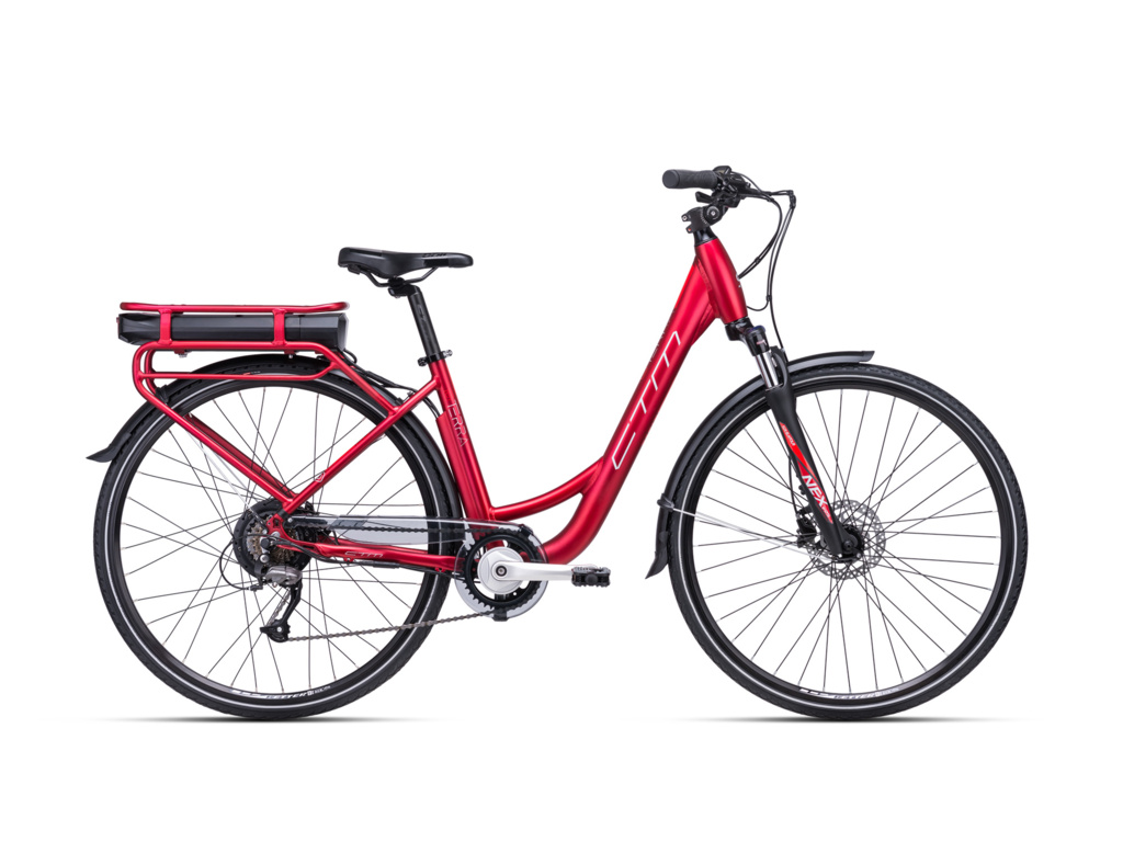 CTM e-Terra je mestský elektrobicykel so stredovým motorom Bafang, vhodný na rekreačnú jazdu po cestách a upravených cyklotrasách. Spoľahlivé radenie zabezpečujú komponenty Shimano s prevodmi 1x7