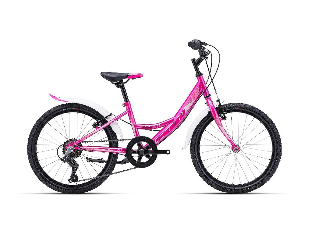 CTM Ellie je krásny dievčenský bicykel pre mladé dámy od 115 do 130 cm. Ľahký hliníkový rám s veľmi pohodlnou jazdou a pevnou vidlicou je vybavený ráfikovými brzdami a jednorýchlostným radením Shimano so 6 prevodmi.