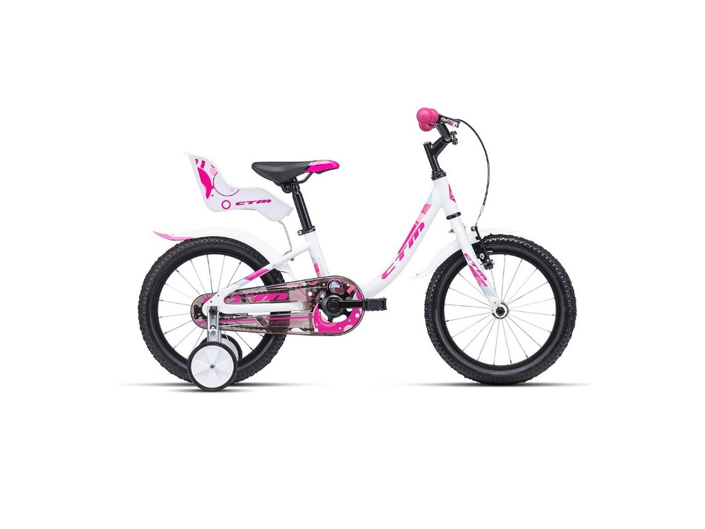 CTM Marry je 16-palcový dievčenský bicykel s ľahkým hliníkovým rámom pre deti s telesnou výškou 100 až 120 cm. Štandardne sa dodáva s vyváženými kolesami, plastovými blatníkmi, bezpečnostným krytom reťaze a sedadlom pre bábiky.