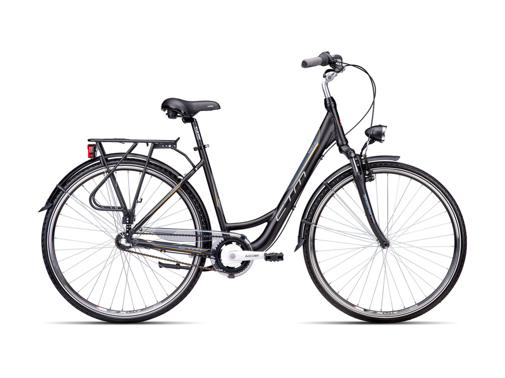 Dámsky 28" mestský bicykel CTM Nancy 2.0 postavený na ALU ráme je určený do mestskej premávky s nízkym vstupom. Pre väčšie pohodlie je vybavený vidlicou Suntour CR-7V 700C. Bicykel má 3 prevody umiestnené v zadnom náboji Nexus 3, ktorý slúži aj ako zadná brzda. Brzdy Tektro V-brake so strmeňmi. Bicykel je vybavený blatníkmi, osvetlením a ochranou reťaze.