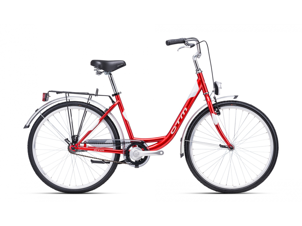 CTM Olivia 1.0 je dámsky mestský bicykel s 26-palcovými kolesami pre nenáročných. Základom je odolný rám vyrobený z Hi-Ten ocele a spoľahlivá ráfiková brzda Alhonga. Rám so zníženou trubkou zaisťuje pohodlné nastupovanie a zosadnutie z bicykla. Bicykel je vybavený zadným nosičom, blatníkmi, osvetlením a stojanom.