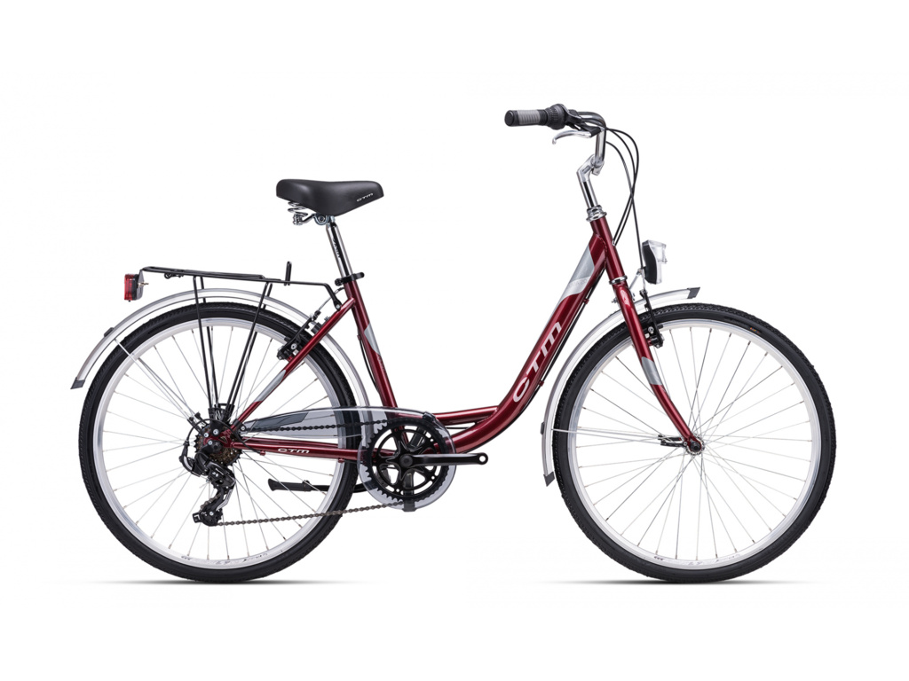 CTM Olivia 2.0 je dámsky mestský bicykel s 26-palcovými kolesami pre nenáročných. Základom je odolný rám vyrobený z Hi-Ten ocele a prehadzovačka so 6 prevodmi. Rám so zníženou trubkou zaisťuje pohodlné nastupovanie a zosadnutie z bicykla. Bicykel je vybavený zadným nosičom, blatníkmi, osvetlením a stojanom.