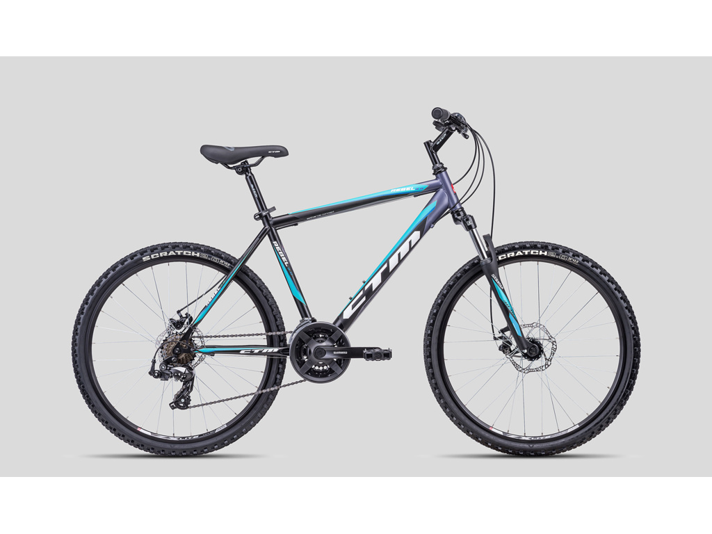 CTM Rebel je základný model pánskeho horského bicykla pre príležitostných cyklistov. Základom je odolný oceľový rám s odpruženou vidlicou Suntour a komponentmi Shimano s prevodmi 3x7. Okrem toho je CTM Rebel vybavený mechanickými kotúčovými brzdami.