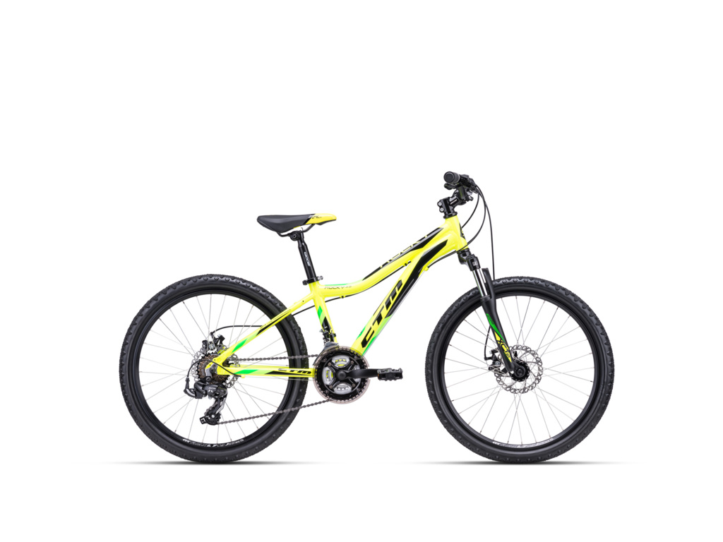 CTM Rocky je detský bicykel s 24" ráfikmi, vhodný pre deti vysoké 120 až 145 cm. CTM Rocky je vybavený hliníkovým rámom, pevnou vidlicou, mechanickými brzdami a komponentmi Shimano s prevodmi 3x7.