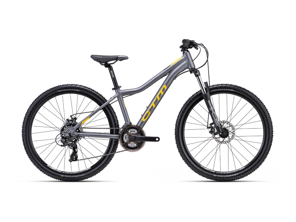 CTM Rocky Jump je detský bicykel s veľkosťou ráfikov 26", vhodný pre mládež s výškou postavy od 130 do 155 cm. Model je vybavený ľahkým hliníkovým rámom pre ľahkú manipuláciu, odpruženou vidlicou Suntour pre zaistenie pohodlia, spoľahlivými brzdami a komponentmi Shimano s 3x7 prevodmi, ktoré vášmu dorastajúcemu športovcovi pomôžu do kopcov CTM Rocky je ideálna voľba pre všetkých bikerských nadšencov, ktorí chcú vyraziť do lesov alebo na nespevnené cesty.