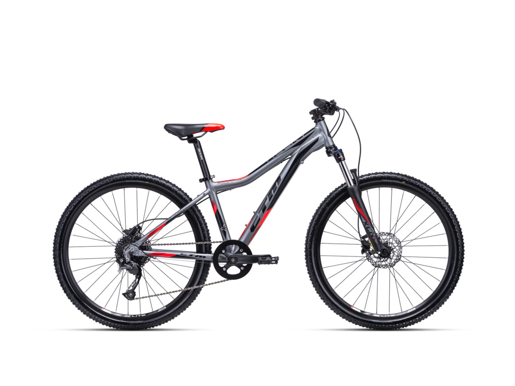 CTM Rocky je detský bicykel s 26" ráfikmi, vhodný pre deti vysoké 130 až 160 cm. CTM Rocky je vybavený hliníkovým rámom, pevnou vidlicou, mechanickými brzdami a komponentmi Shimano s prevodmi 1x9.