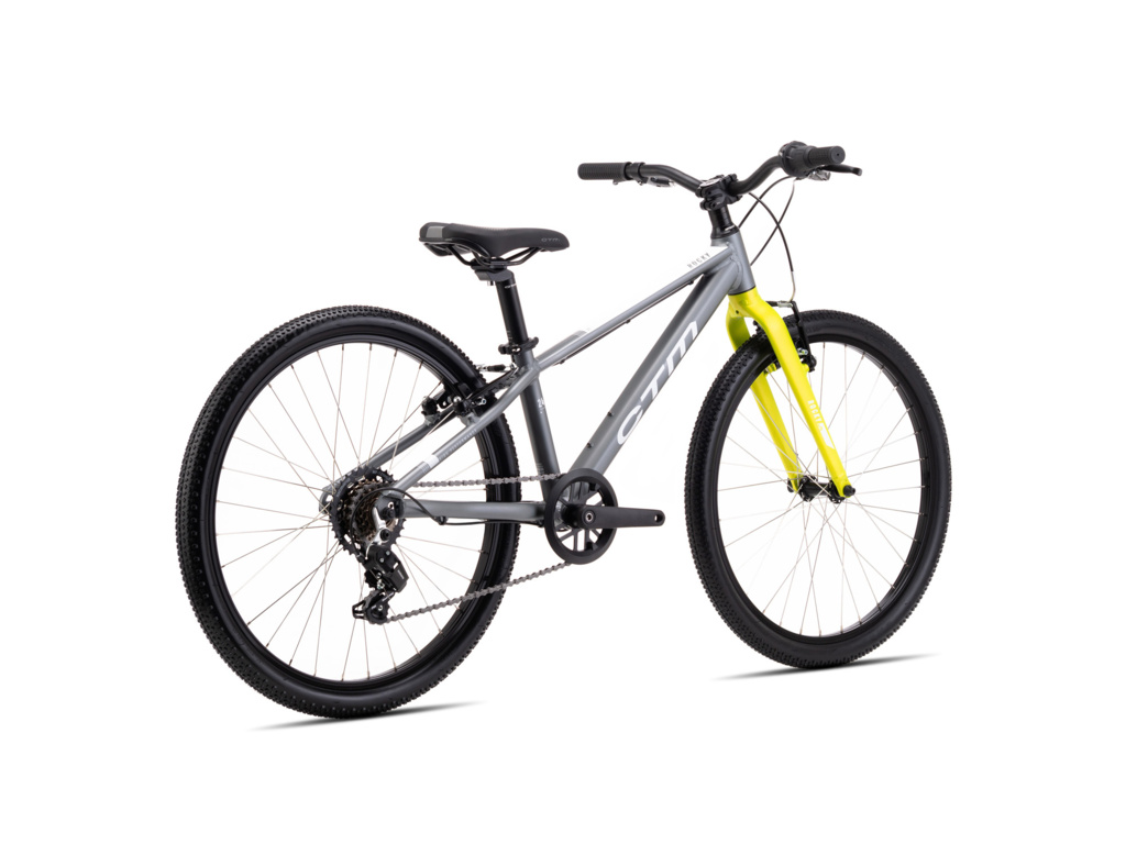 Junior horské kolo CTM Rocky SL 24" – je lehké dětské horské kolo s 24" koly, určené pro děti přibližně 125–145 cm vysoké. Díky hliníkovému rámu je relativně lehké a dobře ovladatelné, takže je vhodné jak na cyklostezky, tak na lehký terén nebo výlety s rodinou.