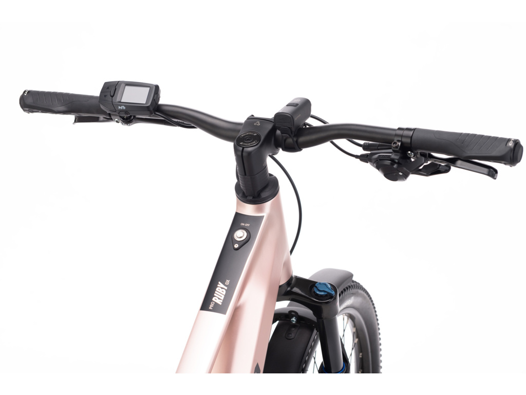 Výkonné dámské horské elektrokolo s pevným rámem, díky kterému bude každý výjezd nezapomenutelným dobrodružstvím. Hliníkový rám s komfortním nízkým nastupováním a integrací kabeláže jsme osadili extrémně výkonným motorem Panasonic GX Ultimate (95Nm), který je spárován s baterií LG. Ta nabízí obrovskou kapacitu až 720Wh, což zajišťuje dlouhý dojezd. Na přehledném barevném LCD displeji se nacházejí všechny potřebné informace o jízdě. Předinstalované aplikace jako Komoot nebo Strava usnadňují orientaci a nabízejí přehledné informace o aktuální trase. Kombinace spolehlivých komponentů jako vzduchová vidlice Suntour XCM32 nebo ověřeného pohonu Shimano CUES zajistí dlouhodobý provoz bez nutnosti častého servisování.