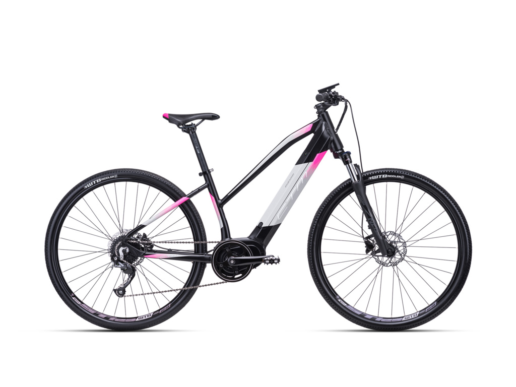 CTM Senze Lady je elektrický krosový bicykel so stredovým motorom Bafang Max Drive, vhodný na rekreačnú jazdu po cestách, cyklotrasách a vďaka odpruženej vidlici a širším plášťom aj do ľahšieho terénu. Spoľahlivé radenie zabezpečujú komponenty Shiman