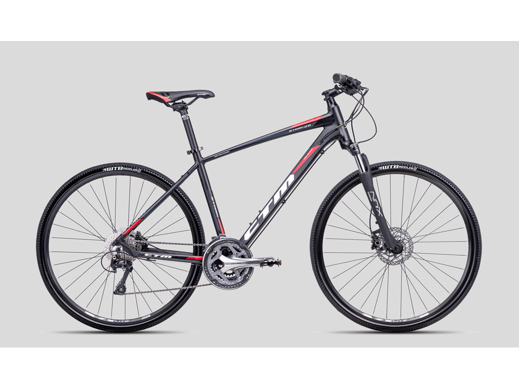 CTM Stark 2.0 je pánsky krosový bicykel, ktorý je vhodný pre športovo založených jazdcov. Jeho základom je hliníkový rám s dvojitým vystužením, vnútorným vedením káblov a bowdenmi, ktorý je vybavený vzduchovou vidlicou Suntour NRX s uzamykaním z riad