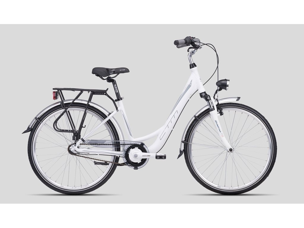 Mestský bicykel CTM Terra 2.0 je postavený na Alu ráme v dámskom dizajne s nízkym stúpaním na 28" kolesách. Pre väčšie pohodlie sa na bicykli používa vidlica Suntour CR-8V 700C. Bicykel má 3 prevody umiestnené v zadnom náboji Shimano Nexus 3, ktorý t