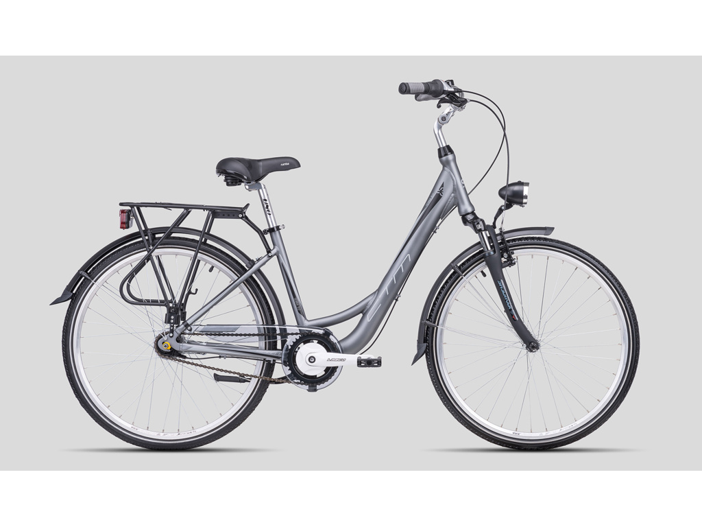 Mestský bicykel CTM Terra 3.0 je postavený na Alu ráme v dámskom dizajne s nízkym zdvihom na 28" kolesách. Pre väčšie pohodlie sa na bicykli používa vidlica Suntour CR-8V 700C. Bicykel ponúka 7 prevodov umiestnených v zadnom náboji Shimano Nexus 7, k