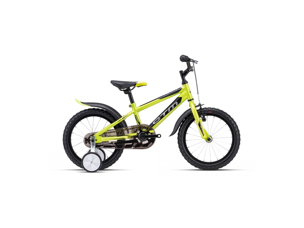 Detský bicykel na 16-palcových kolesách, vhodný pre prvé začiatky v sedle. CTM Tommy ponúka oceľový rám, 1 prevod so zadnou protišľapnou brzdou, bezpečnostný kryt reťaze, plastové blatníky a odnímateľné balančné kolieska. Hravý dizajn modelu a veselé farby si váš malý športovcov zamiluje.