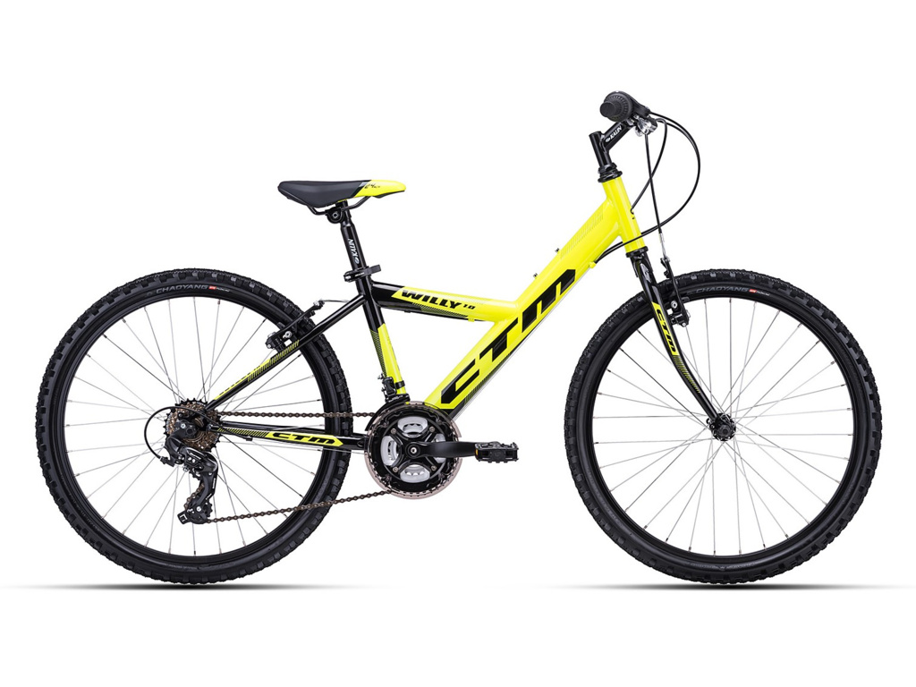 Detský bicykel CTM Willy 1.0 s 24" kolesami je vhodný pre deti vysoké 120 až 145 cm. Bicykel je vybavený oceľovým rámom, pevnou vidlicou, V-brzdami a komponentmi Shimano s 18 prevodmi.