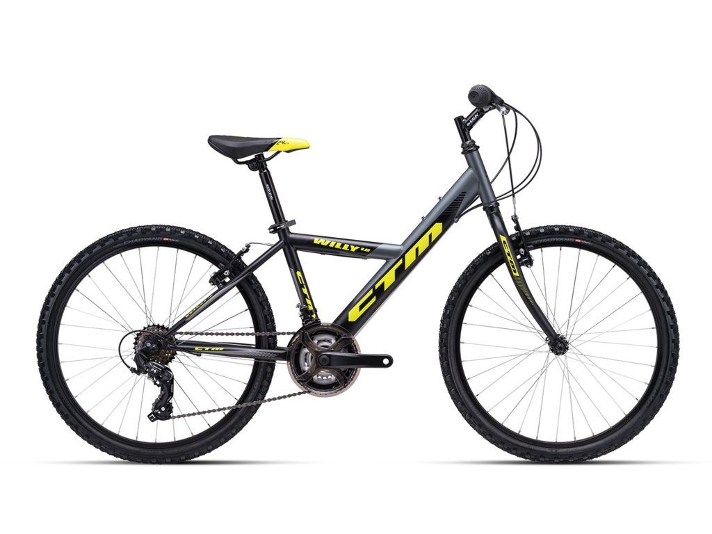 Detský bicykel CTM Willy 1.0 s 24" kolesami je vhodný pre deti vysoké 125 až 145 cm. Bicykel je vybavený oceľovým rámom, pevnou vidlicou, V-brzdami a komponentmi Shimano s prevodmi 3x6.