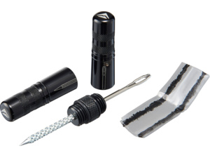 Opravné sady na bezdušové pneumatiky obsahujú nástroje a na rýchle a efektívne opravy väčších defektov bezdušových plášťov.