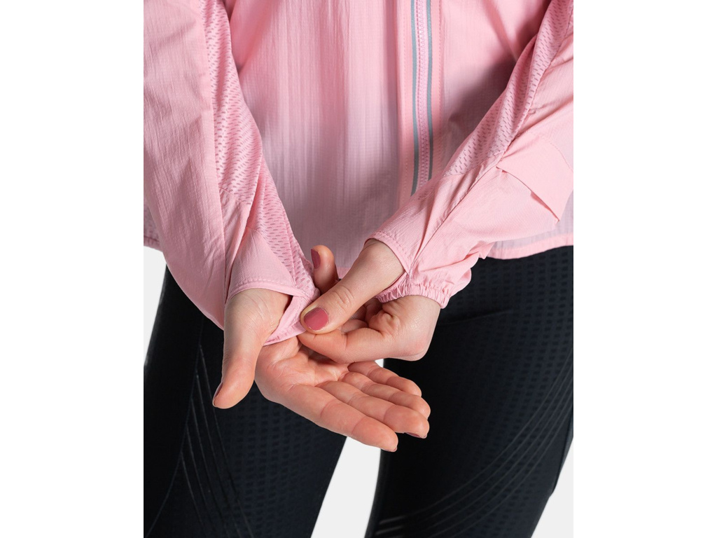 Celková hmotnosť bundy je iba 90 gramov vo veľkosti 36. Bundu ľahko zbalíte do bočného vrecka. V podpazuší a na bokoch je použitý tenký sieťovaný materiál, ktorý spolu s mikroperforáciou na chrbte zaručuje maximálnu priedušnosť. Vysoký golier je z vnútornej strany vystlaný rýchloschnúcim materiálom, ktorý dobre odvádza pot. Bunda má predĺžené rukávy s manžetou na palec a prestrihom na hodinky. Predný zips s krytkou brady je dvojcestný a poslúži na lepšie odvetrávanie. Voľnejší strih vás nebude obmedzovať v pohybe. Lemy rukávov a spodný lem krásne priliehajú. Na chrbte je použitá laserom rezaná mikroperforácia. Samozrejmosťou pri produktoch Kilpi sú výrazné reflexné prvky.