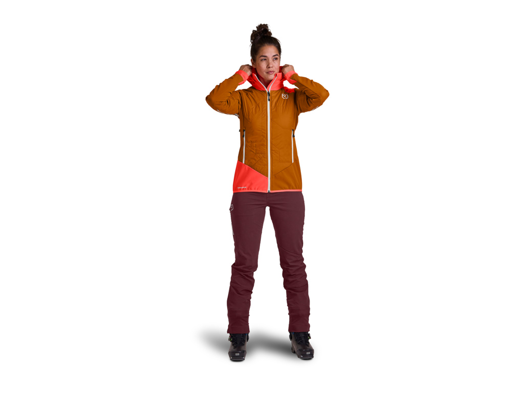 Náročné skialpinistické výstupy v krutém mrazu? Na to je dámská bunda ORTOVOX SW Col Becchei Hybrid jako stvořená. Poskytuje optimální ochranu a maximální volnost pohybu.