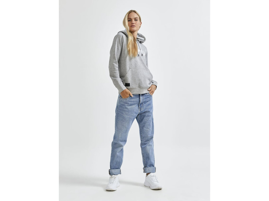 Dámska mikina CRAFT CORE s kapucňou a veľkým logom na hrudi je ideálna na voľný čas.