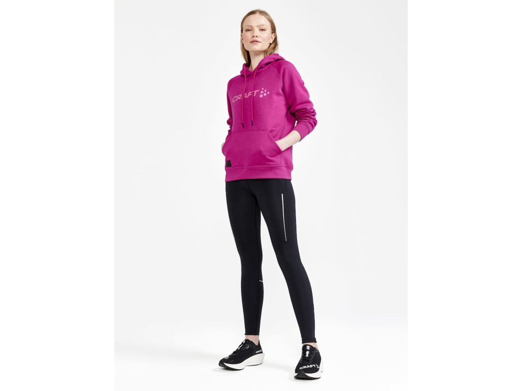 Dámska mikina CRAFT CORE s kapucňou a veľkým logom na hrudi je ideálna na voľný čas.