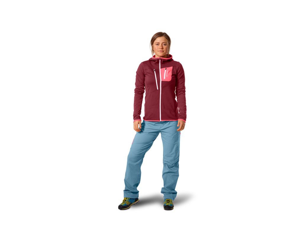 Dámska mikina ORTOVOX MERINO FLEECE GRID HOODY je skvelou voľbou pre všetky horolezkyne a turistky, ktoré hľadajú ľahké, priedušné, odolné a dobre izolujúce oblečenie na náročné horské výpravy.Podšívka sieťovej štruktúry je vyrobená z kvalitnej Merino vlny, ktorá dokonale odvádza pot a reguluje telesnú teplotu. Kanáliky zároveň vytvárajú vzduchové vrecká, vďaka ktorým je mikina skvelým tepelným izolantom.Mikina je rovnako doma v horskom údolí ako na vrcholoch najvyšších alpských štítov. Ďalšou veľkou výhodou tejto flísovej mikiny je jej ergonomický strih a praktický golier, ktorý vás ochráni pred ostrým horským slnkom alebo vetrom. Do veľkého náprsného vrecka si tiež môžete ľahko schovať mapu a ušetriť si starosti s vyzliekaním ťažkého batohu.Na dlhé dni strávené lezením v horách potrebujete ľahký materiál, na ktorý sa môžete spoľahnúť. Rad ORTOVOX MERINO FLEECE GRID je prispôsobený potrebám lezkýň, ktoré vyžadujú veľmi ľahké, elastické a zároveň priedušné vybavenie, ktoré