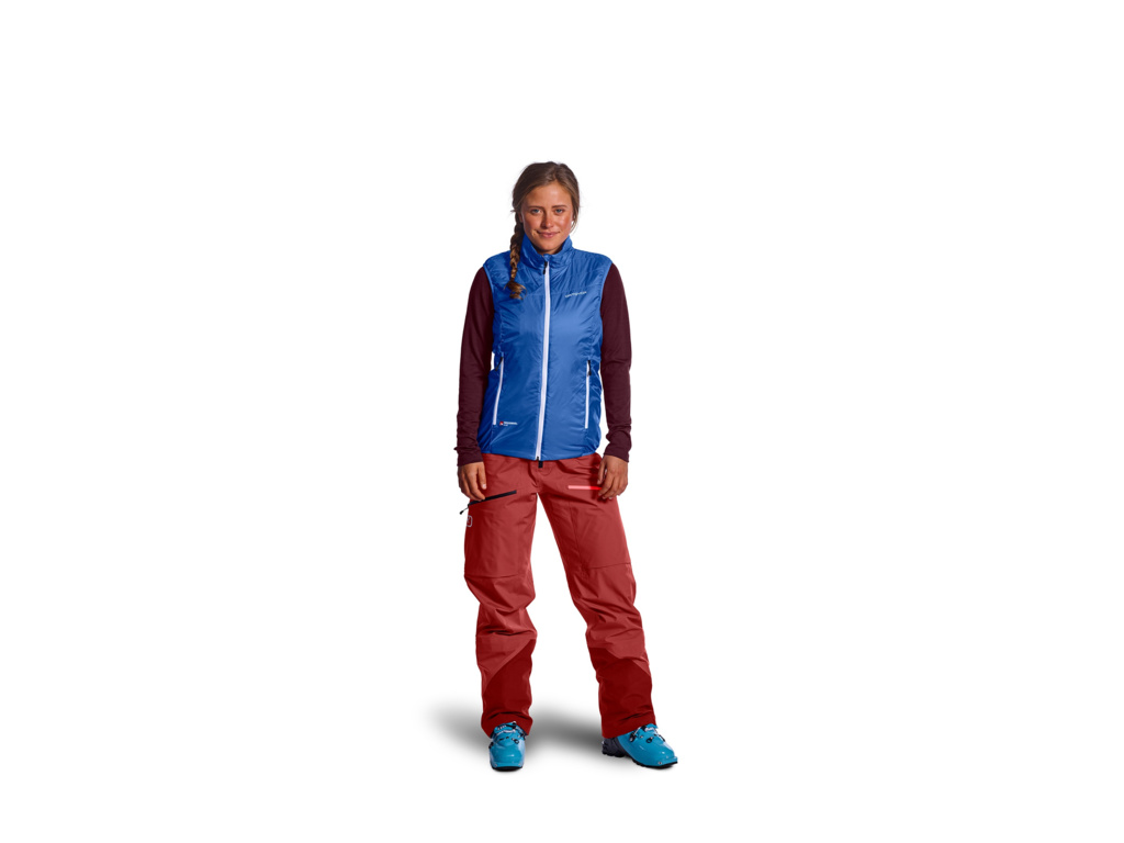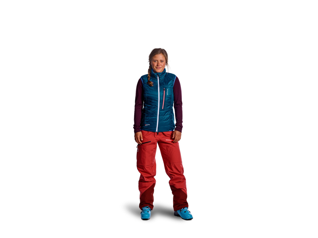 Jedna vesta, dva modely, dve farby. Dámska obojstranná zateplená vesta, vhodná najmä na skitouring. S izoláciou z vlny SWISSWOOL®.