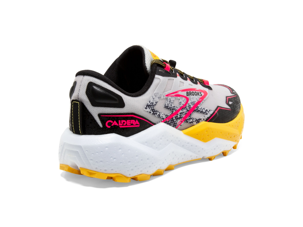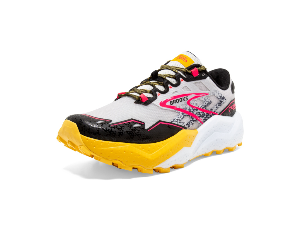 Tlmenie naboostované dusíkom prináša komfort, o ktorom sa vám nesnívalo. V traile ale nesmie chýbať ani stabilita a spoľahlivosť. O tieto vlastnosti sa stará široká platforma a umiestnenie chodidla hlboko vo vnútri tlmiacej peny. Tešiť sa tak môžete na stabilnú a úžasne pohodlnú jazdu naprieč rôznymi terénmi. Nová verzia Caldery prináša radikálne zmeny v geometrii aj spracovaní. Siedma generácia je vďaka tomu oveľa plynulejšia, a aj napriek mohutnému tlmeniu pôsobí nečakane prirodzeným dojmom. Reliéf hôr nie je iba dizajnovým prvkom. Vytiahnutie tlmenia nad úroveň chodidla nohu skvele stabilizuje a horské sedlá – nižšie miesta penovej vrstvy – potom podporujú flexibilitu celej topánky na správnych miestach. Inovované tlmenie DNA LOFT v3 poháňané dusíkom je ľahké, mäkké a práve vďaka dusíku má nízku hmotnosť a vysokú životnosť aj energetickú návratnosť. Dôležitý je aj tvar a geometria tlmenia. S platformou oveľa širšou, než je chodidlo a vyvýšenými bočnými hranami budete mať pocit, že žehlíte terén pod vami. Tento pocit sa dá prirovnať k jazde na celoodpruženom bicykli. Stačí pustiť nohy, a nielen v zbehoch si užívať vietor vo vlasoch bez starostí zo zlého došľapu. Zvršok pevne obopína chodidlo. Je ale dostatočne široký a v špičke anatomicky tvarovaný, aby netlačil ani pri celodennom behu. Prepracovaný materiál zvršku je nenasiakavý a vysoko odolný. Na šnurovacom systéme nájdete praktické pútko na schovanie šnúrok. V prednej a zadnej časti sa nachádzajú očká na upevnenie návlekov. Podošva TrailTack je rýdzi univerzál, poskytuje skvelú trakciu na suchom aj podmáčanom traile. Tvar jednotlivých špuntov je pritom navrhnutý tak, aby nedochádzalo k príliš rýchlemu opotrebovaniu ani pri behu po asfalte a spevnených cestách.
