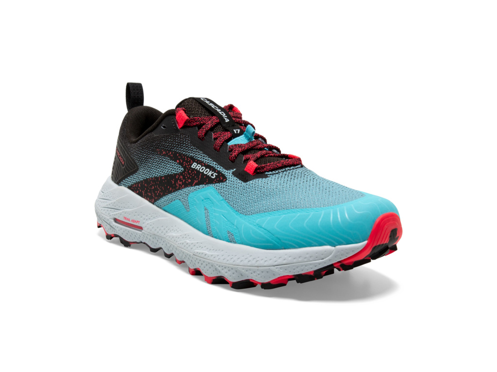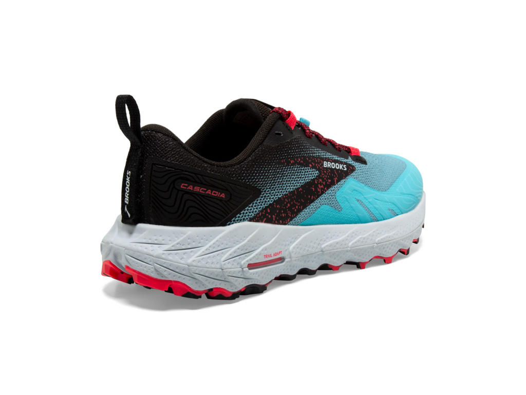 Sedemnásta generácia BROOKS Cascadia poteší ako začínajúcich trailových bežcov, tak aj skúsených pretekárov. Bude spoľahlivo fungovať v okolí miest aj v náročnejších horských terénoch. Pri polhodinovom kluse aj ultra na desiatky hodín. Cascadia vždy bola synonymom všestrannosti a s novou verziou to platí dvojnásobne. Nový TRAIL ADAPT SYSTEM kombinuje výstuhu rock shield, adaptívne tlmenie a segmentovanú podošvu pre maximálnu kontrolu a stabilitu v teréne. Inšpiráciu výrobcovia čerpali pri tvare kopyta horskej kozy. Samostatne fungujúce bloky tlmenia aj gripu sa prispôsobia aj tomu najnáročnejšiemu terénu a vy sa budete môcť spoľahnúť na maximálnu stabilitu a kontrolu. Odľahčené tlmenie s penou DNA LOFT v2 zaistí pohodlie aj na dlhších vzdialenostiach. Medzi dvoma vrstvami tejto peny je vložený balistický Rock Shield, ktorý chráni chodidlo pred ostrými kameňmi bez toho, aby topánke ubral na flexibilite. Drop dosahuje výšku 8 mm. Zvršok je typický Brooks. Dokonalý tvar, maximálny komfort a stredná šírka, ktorá vyhovuje takmer každému. Cascadia 17 vám zaručene sadne „na prvú dobrú”. Chýbať nesmú výrazné výstuhy po celom obvode topánky, ktoré spoľahlivo chránia zvršok aj chodidlo. Samotný materiál zvršku je vysoko odolný a v neposlednom rade vysoko priedušný a nenasiakavý mesh. Na výrobu Brooks Cascadia 17 sa využíva viac recyklovaných materiálov ako kedykoľvek predtým a pri procese farbenia je využitých o 75 % menej vody a o 66 % menej energie.