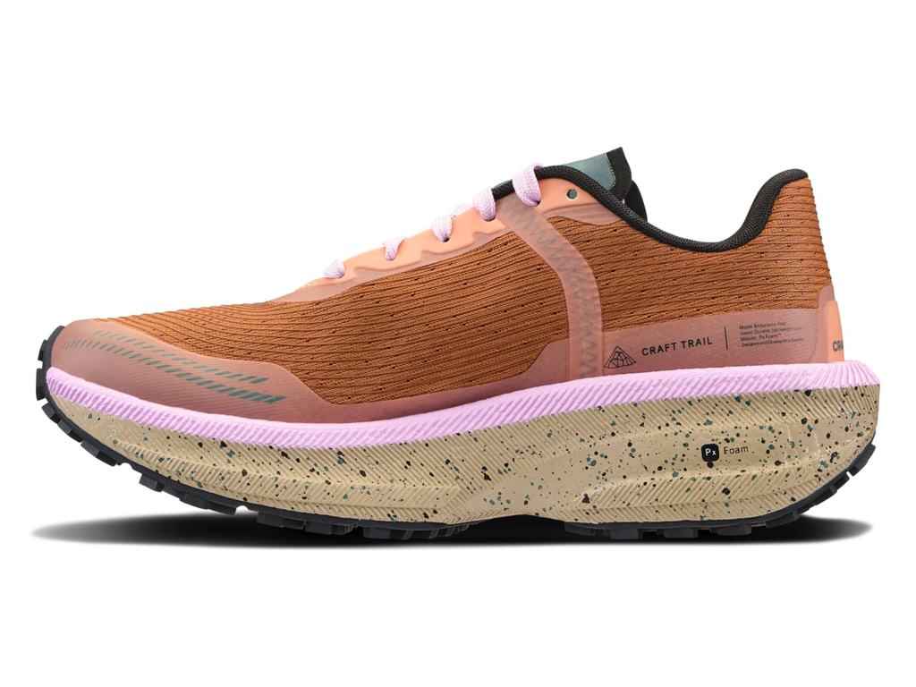 Trailový koncept CRAFT PRO Endurance Trail prináša novú úroveň citlivosti pre skutočných trailových bežcov. Medzipodrážka s penou Px Foam™ je navrhnutá pre výbušný odraz zo špičky a mäkký dopad pri každom kroku.
