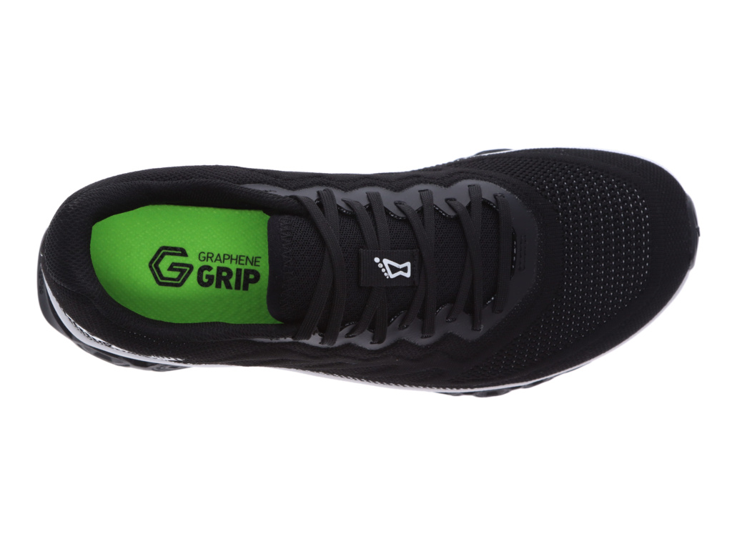 Nové materiály nám otvárajú nové možnosti. Grip obohatený grafénom pre skvelý pomer medzi priľnavosťou a životnosťou už iste veľmi dobre poznáte. Teraz prichádza nová éra. Éra grafenového tlmenia. Naplno si ho môžete užiť v novinke INOV-8 F-LITE FLY, ktorá zmazáva hranice medzi cestným behom a workoutom. Tlmiaca pena G-FLY obohatená grafénom ťaží zo všetkých benefitov tohto Nobelovou cenou ovenčeného materiálu. Kombinácia maximálnej ohybnosti, stability a energetickej návratnosti. Tento koktail vlastností je tlčúcim srdcom nových F-LITE FLY, ktoré vás nadchnú od prvého kroku. Medzipodrážka má drop 8 milimetrov a pod pätou ponúka 16 milimetrov tlmenia. To je dostatočne vysoká vrstva, aby poskytla potrebný komfort pre objemový tréning alebo ľahký klus po spevnených cestách. Zároveň ale táto mohutnosť umožňuje perfektnú vnímavosť a cit pre došľap, ktorý je ešte umocnený hybridnou podošvou. U F-LITE FLY nenájdete klasickú gumovú vzorku, ale hybridnú gumopenovú kontaktnú plochu. Táto hybridná podošva dodáva topánke extrémnu flexibilitu, pretože ohybu pri absencii tuhej gumy vôbec nič nebráni. Priľnavosť na spevnených povrchoch, na ktoré je F-LITE FLY určený, je perfektná za sucha aj za mokra. Bezproblémová je vďaka prítomnosti grafénu aj životnosť, ktorá zodpovedá štandardu cestných objemových topánok. Vo výsledku je vďaka použitým materiálom a konštrukcii F-LITE FLY jednou z najživších topánok na trhu, ktorá bude bleskurýchlo a s chirurgickou presnosťou reagovať na najmenší pohyb vášho chodidla. To je v topánke spoľahlivo ukotvené vďaka pevnému a odolnému pletenému zvršku. Zvršok napnutý na kopyte číslo 5 (na škále 1-5 ide o náš najširší fit) je dostatočne priestranný aj pre športovcov so širším tvarom chodidla a poukazuje na dvojaký charakter F-LITE FLY. Túto topánku totiž môžete využiť nielen na beh na ceste, ale aj na intenzívny workout vonku aj vo vnútri. Na rozdiel od klasických bežeckých topánok má totiž F-LITE FLY zvršok s intenzívnejšou bočnou stabilizáciou, o ktorú sa stará robustnejšia štruktúra pleteniny okolo priehlavku. Tvrdé a pevné výstužné prvky budete hľadať márne, takže akékoľvek otlaky, alebo pľuzgiere v žiadnom prípade nehrozia. Chodidlo sa v topánke nepohne ani pri intenzívnych zmenách smeru a dynamických cvičeniach, zatiaľ čo pri vytrvalostnom behu si nevšimnete žiadne odlišnosti od klasickej bežeckej topánky.