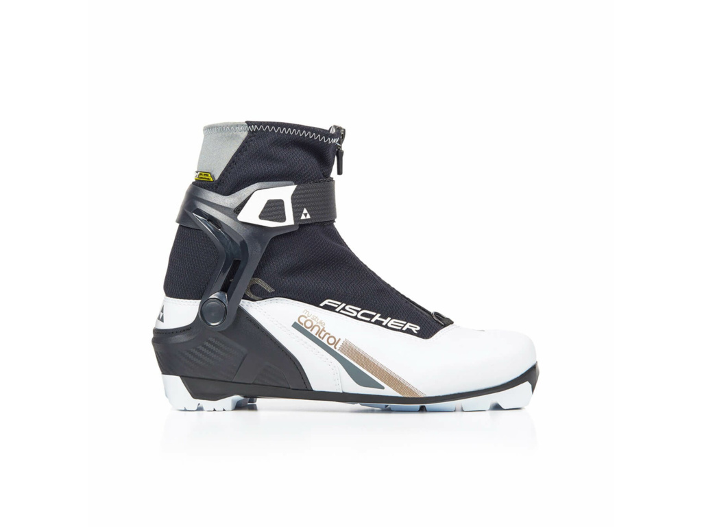Oblíbený model dámských běžeckých bot Fischer XC Control, vhodný pro klasickou techniku. Díky výztuži s pohyblivým kloubem a stahovacím páskem je ovšem použitelný i pro občasné bruslení.