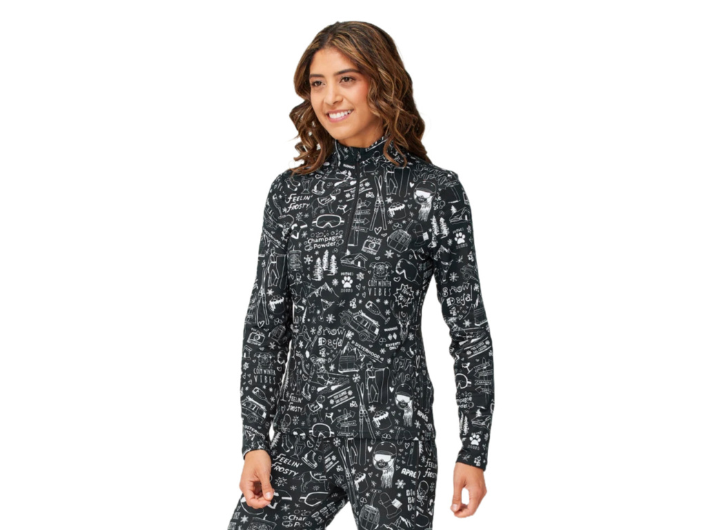 Dámská základní vrstva se stojáčkem a 1/4 zipem z recyklovaného, čtyřsměrně strečového materiálu. Je rychleschnoucí, odvádí vlhkost, nabízí UPF 50+ a výrazný streetartový design, který vynikne na svahu i ve volném čase.