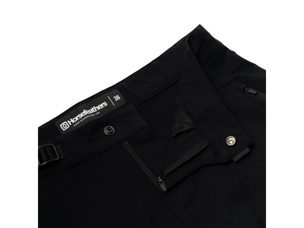 Rychleschnoucí a strečový materiál, nastavitelný pas, větrání na vnitřních stranách nohavic, postranní kapsy na YKK zipy a délka i šířka vhodná pro nezbytné chrániče kolen.