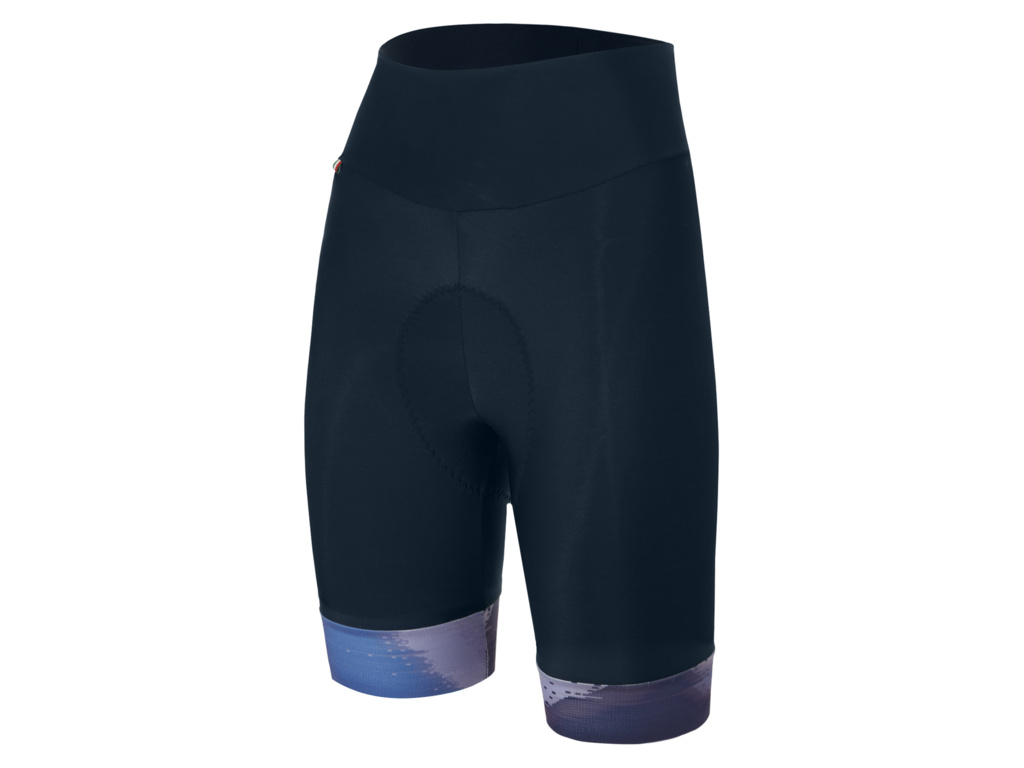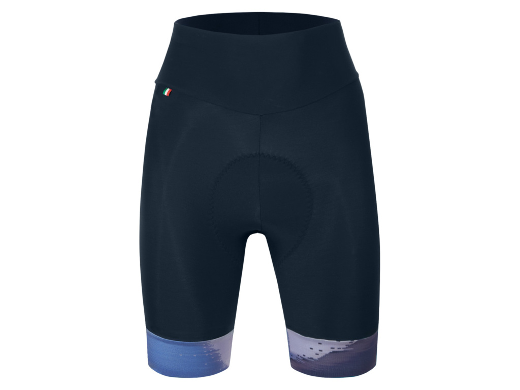 Dámske kraťasy SANTINI Watt bez trakov, vyrobené z prémiovej lycry pre ľahkú kompresiu a priedušnosť. Vysoký pás zabezpečuje maximálne pohodlie a výstelka GILevo s gélovým jadrom tlmí nárazy.