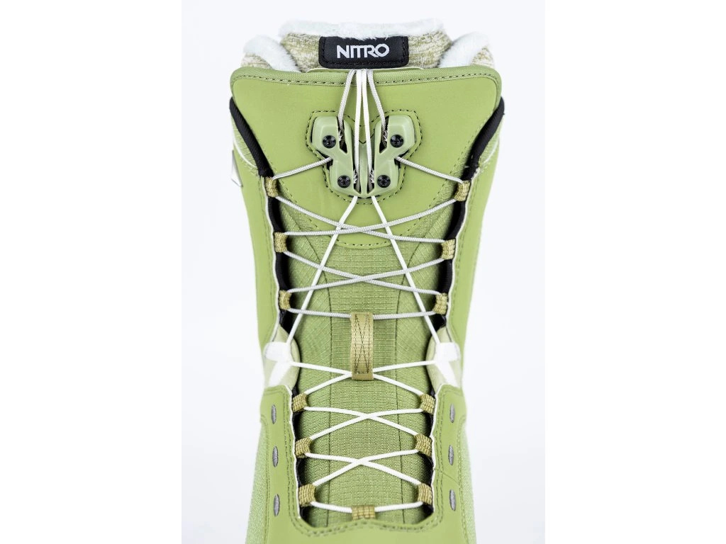 Rychlé a spolehlivé utažení umožňuje TLS Twin Lacing systém v kombinaci s Bail Out systémem, který usnadňuje povolení a vyzouvání během pár sekund. DLS utahování vnitřní boty spolu s Re/Lace zámkem umožní kdykoli jemně doladit utažení. O komfort a podporu klenby se stará dámská anatomicky tvarovaná stélka.S flex indexem 5/10 jsou Nitro Monarch ideální boty pro snowboardistky, které chtějí pohodlný a spolehlivý model pro celodenní ježdění.