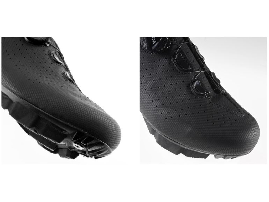 Zvršok z mikrovlákna je perforovaný, aby optimalizoval priedušnosť a ventiláciu a zabezpečil svieže a suché nohy počas celej jazdy.