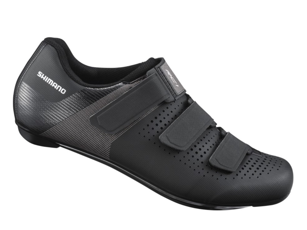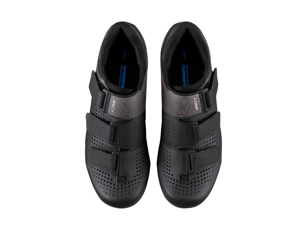 Dámska cestná cyklistická obuv Shimano SH-RC100 pre pohodlnú jazdu. Tri pásiky na suchý zips umožňujú dokonalé utiahnutie tretry po celej jej dĺžke.