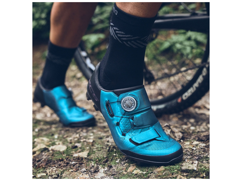 SHIMANO SH-XC502 je štýlová, všestranná a výkonná XC obuv pre ženy do zmiešaného terénu. Gumová podrážka SHIMANO ULTREAD XC im poskytuje priľnavosť na pretekárskej úrovni a nízka, tuhá a ľahká medzipodrážka vystužená karbónom okamžite prenáša energiu do pedálov. Pohodlie a nízku hmotnosť zaisťuje zvršok tenisiek z kombinácie sieťoviny/TPU a syntetickej kože, zatiaľ čo technológia obopínania Surround zaručuje optimálne prispôsobenie ženskému chodidlu. Vďaka zapínaniu BOA® L6 dosiahnete presné prispôsobenie nohe.Hmotnosť: 290 g
