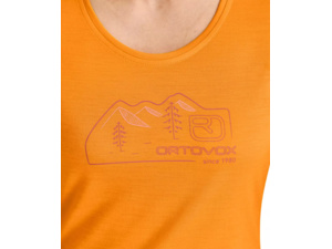 Stylový potisk loga ORTOVOX s horskou tématikou na hrudi.