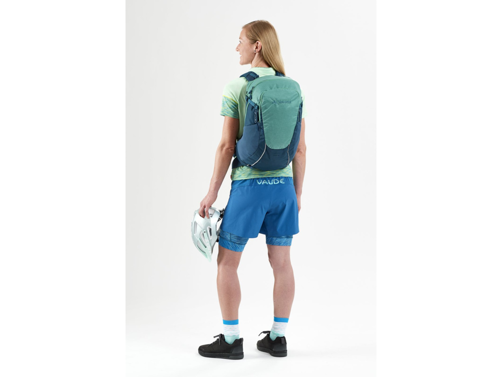 Ľahký, kompaktný dámsky batoh Vaude Tremalzo 18 s objemom 18 l vhodný na horskú cyklistiku a turistiku. Batoh má nastaviteľné ramenné popruhy a dokonalé odvetrávanie chrbta.Dámsky batoh Tremalzo 18 má dobré rozloženie priehradiek s rýchlou a jednoduchou orientáciou. Reflexné prvky zaručujú väčšiu bezpečnosť za zlého počasia. Priehradky po stranách ponúkajú úložný priestor na rukavice, gély alebo sprchu. Ďalšou výhodou je možnosť pripojenia prilby. Systém Aeroflex 3D poskytuje vynikajúci komfort pri nosení a optimálne odvetrávanie chrbta. Model Tremalzo je navrhnutý presne podľa potrieb ženského tela. Batoh bol vyrobený v súlade s prísnymi environmentálnymi kritériami bluesign®.