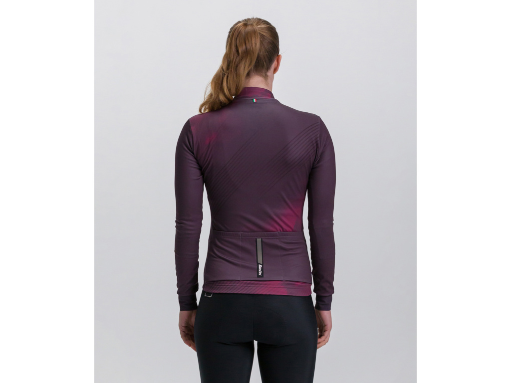 SANTINI Pure Dye je dámsky termo dres s dlhým rukávom navrhnutý v klasickom strihu pre pohodlné nosenie. Je vyrobený z prvotriednej talianskej termotkaniny zaisťujúcej priedušnosť, udržanie tepla a mimoriadne jemný pocit na koži. Zvýšený golier a predĺžená zadná strana plní ochrannú funkciu, dvojité zadné vrecko slúži ako perfektný úložný priestor pre vaše nevyhnutné maličkosti.