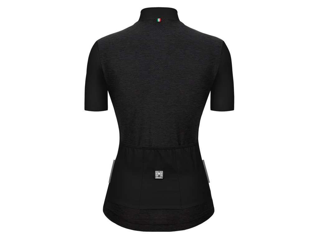 Najpredávanejší dámsky dres z kolekcie SANTINI – SANTINI Puro – je vyrobený z kombinácie ľahkých a výkonných tkanín, ktoré poskytujú extrémne pohodlie a priedušnosť. Špeciálna kombinácia mikrovlákna ultraľahkých rukávov a kartáčovanej melanžovej tkaniny na tele zaisťuje super čistý a elegantný vzhľad. Úzky strih dresu s predĺženými rukávmi surového strihu mu dodáva moderný vzhľad, zatiaľ čo vnútorný silikónový úchyt v páse udržuje dres pevne na svojom mieste za každých okolností. Francúzsky golier vám poskytne pohodlie a voľnosť pohybu a vďaka obrátenému plochému zipsu si prispôsobíte ventiláciu. Navyše si do trojitého zadného vrecka môžete uložiť všetky nevyhnutnosti a o vašu bezpečnosť sa postarajú reflexné bodky na chrbte, ktoré zvyšujú viditeľnosť.