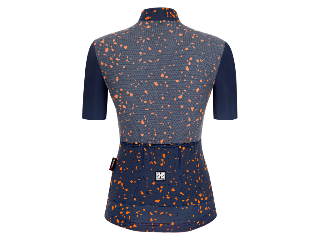 Pohodlný dámsky cyklistický dres vhodný do teplých letných dní alebo do interiéru? To je SANTINI Delta Pietra Jersey Slim fit strihu s rýchloschnúcou tkaninou na chrbte a elastickým silikónovým lemom v spodnej časti.