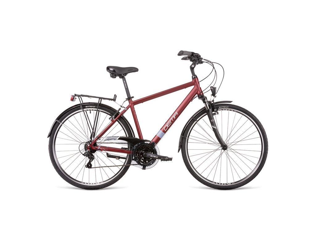 DEMA Arosa 1 je ekonomická varianta pánskeho krosového bicykla pre víkendové jazdy po cyklotrasách. Okrem odpruženej vidlice, ktorá vám zaistí pohodlie, radenie SHIMANO s 3x7 prevodmi a bŕzd EXTEND vás zaručene poteší výbava – svetlá, zadný stojan, nosič a blatníky.