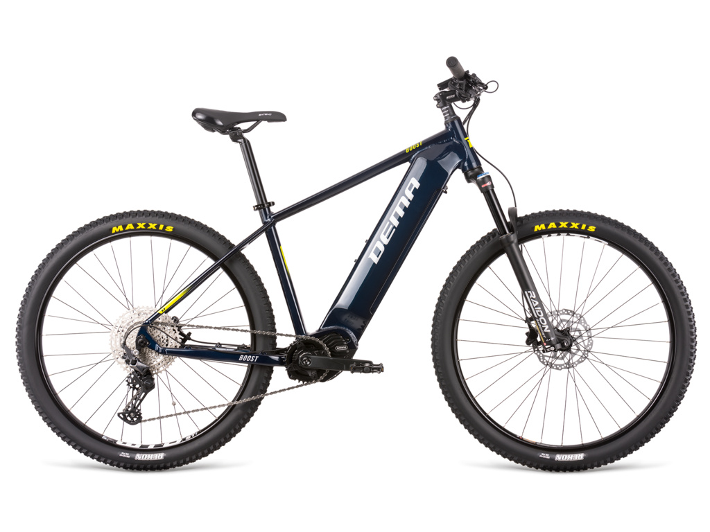 DEMA Boost je športový MTB elektrobicykel, ktorý si zamilujete pre jeho športovo ladenú geometriu aj zaujímavý dizajn. Je pohodlný, takže na ňom hravo zvládnete celodenné výlety v prírode, obratný na traile a splní vaše požiadavky aj pri dochádzaní do práce. Ponúka pevný hliníkový rám so športovou geometriou, výkonný stredovým motor Bafang M420 s krútiacim momentom 80 Nm a batériu s kapacitou 630 Wh. O pohodlný a bezstarostný chod jazdy sa stará vidlica SR SUNTOUR, zaisťujúca 120 mm predného zdvihu, 12-rýchlostné radenie SRAM SX Eagle a spoľahlivé brzdy SHIMANO MT200.