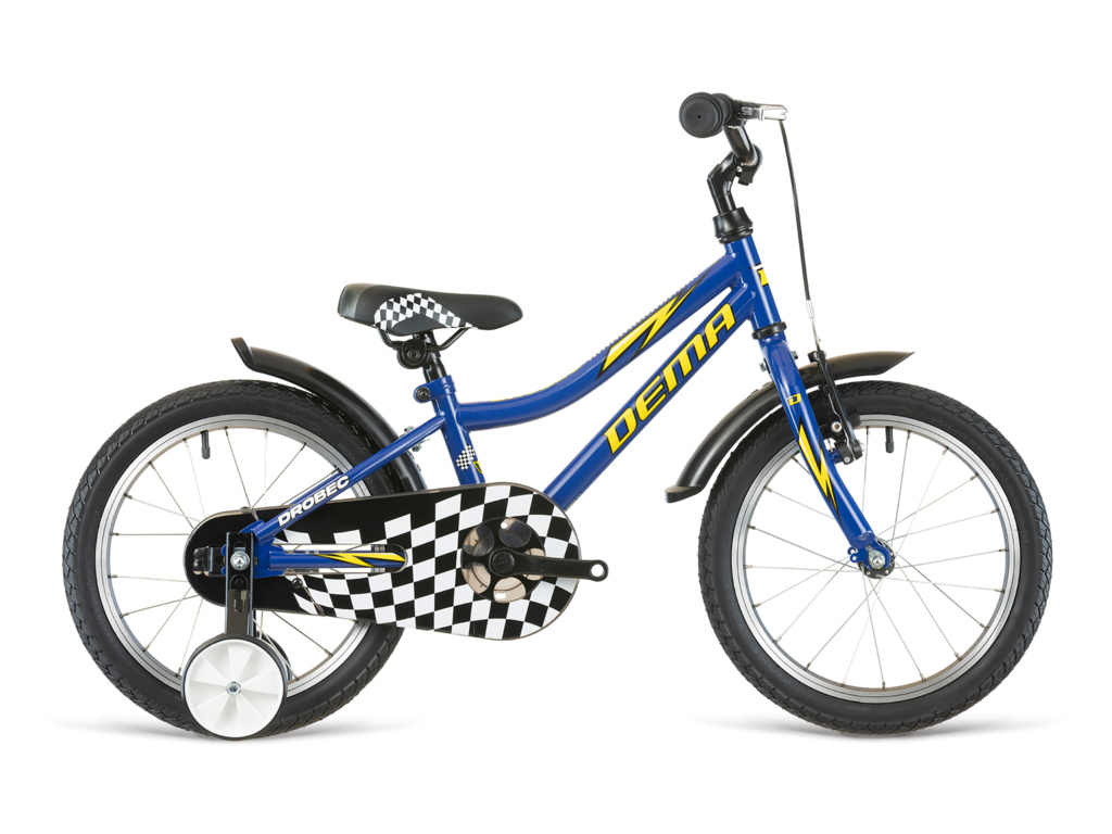 Detský bicykel na 16-palcových kolesách, vhodný pre začiatky v sedle. DEMA Drobec so zníženou hornou rámovou trubkou pre pohodlný výstup aj nástup ponúka rám v krásnych farbách, 1 prevod so zadnou protišľapnou brzdou, bezpečnostný kryt reťaze, plastové blatníky a odnímateľné balančné kolieska. Jednoduchá a intuitívna manipulácia, bezpečnosť, hravosť – to je DEMA Drobec.