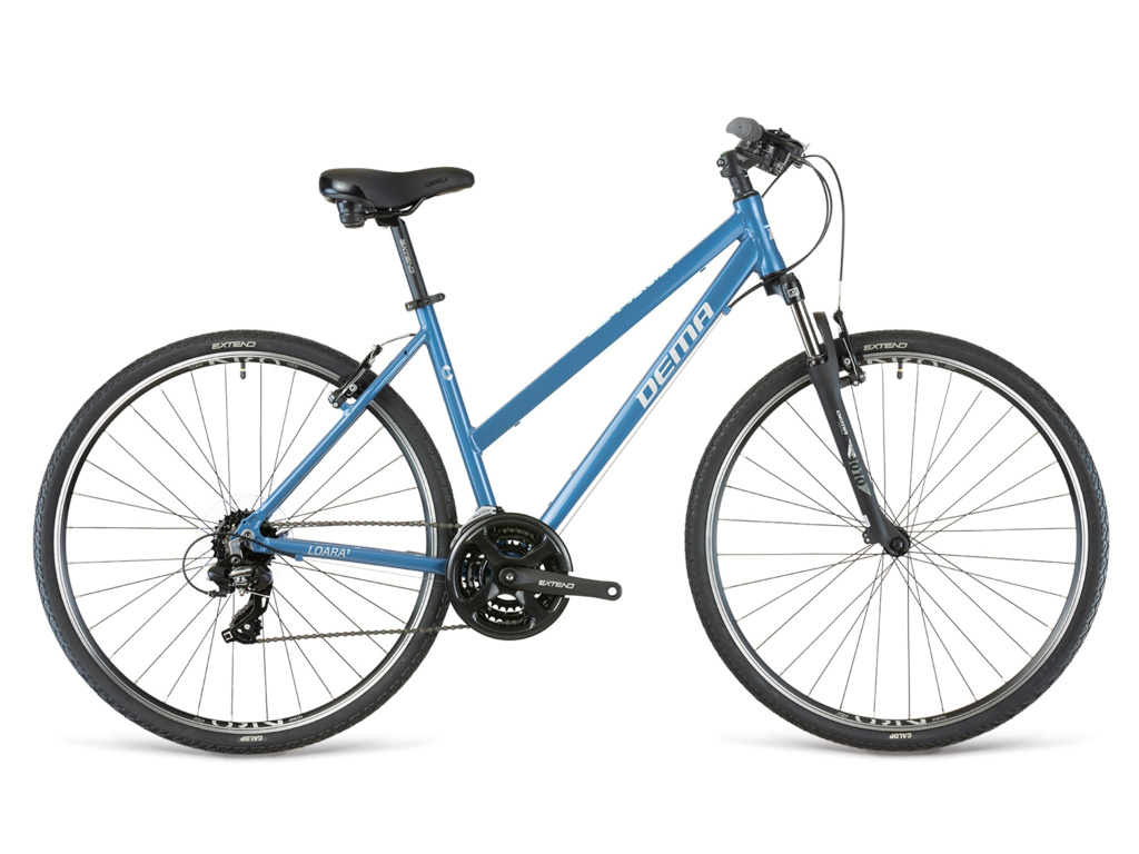 DEMA Loara 1. dámsky crossový bicykel, je vstupným modelom radu Loara. Je určený rekreačným cyklistkám, ale nezľakne sa žiadnej cyklotrasy, cesty po meste ani do práce. Pevný rám DEMA LOARA 1 je osadený odpruženou vidlicou SR SUNTOUR pre vaše maximálne pohodlie, radením SHIMANO HG200 s 3x7 prevodmi a spoľahlivými brzdami EXTEND. Znížená horná rámová trubka vám uľahčí pohodlný a bezpečný nástup aj výstup. Tento bicykel sa stane vašim každodenným parťákom.