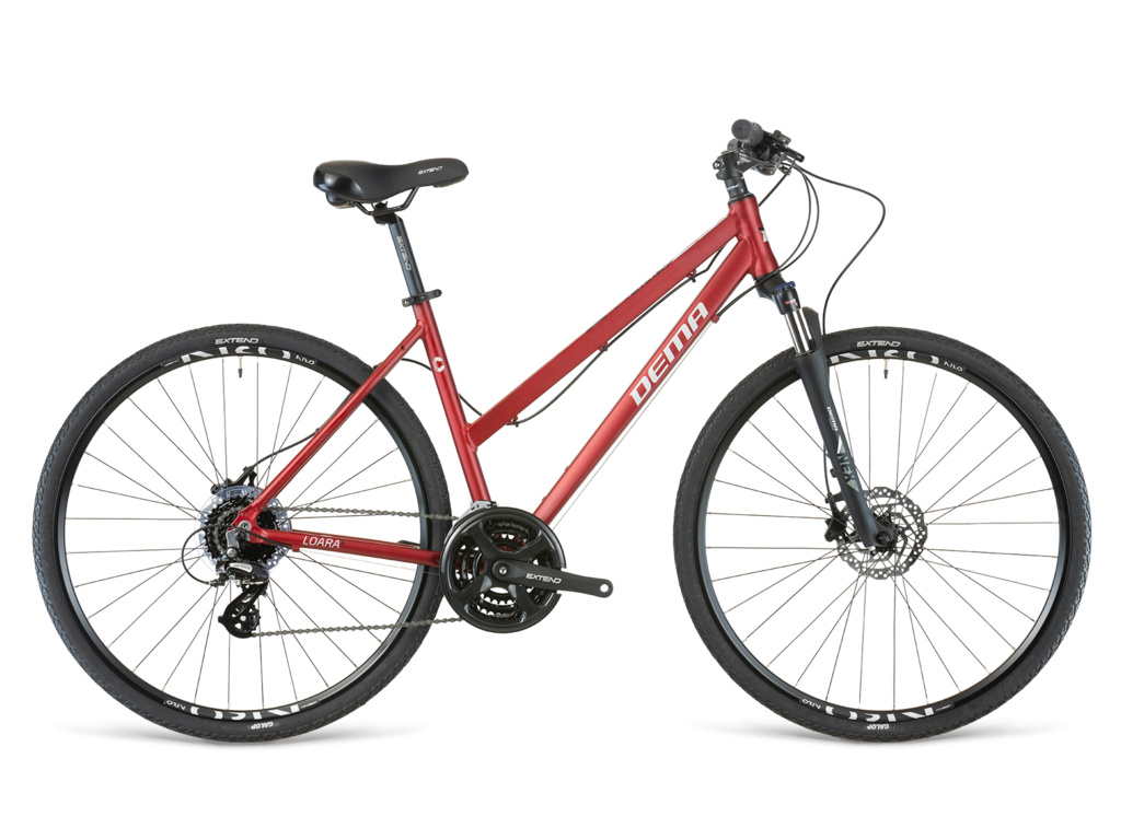 DEMA Loara 5 je dámsky crossový bicykel, ktorý sa nezľakne žiadnej cyklotrasy, cesty do práce ani po meste. Pevný rám DEMA LOARA 5 je osadený odpruženou vidlicou SR SUNTOUR pre vaše maximálne pohodlie, radením SHIMANO M315 s 3x8 prevodmi a spoľahlivými brzdami SHIMANO MT200. Znížená horná rámová trubka vám uľahčí pohodlný a bezpečný nástup aj výstup. Tento bicykel sa stane vašim každodenným parťákom.